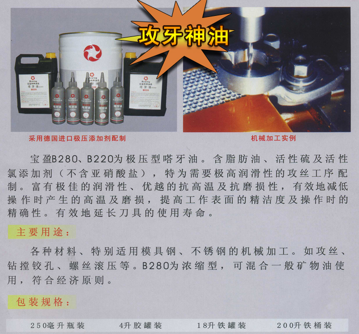 如果你在攻牙工序遇到难题,请使用宝盈“攻牙神油”B280、B220 难题即迎刃而解。