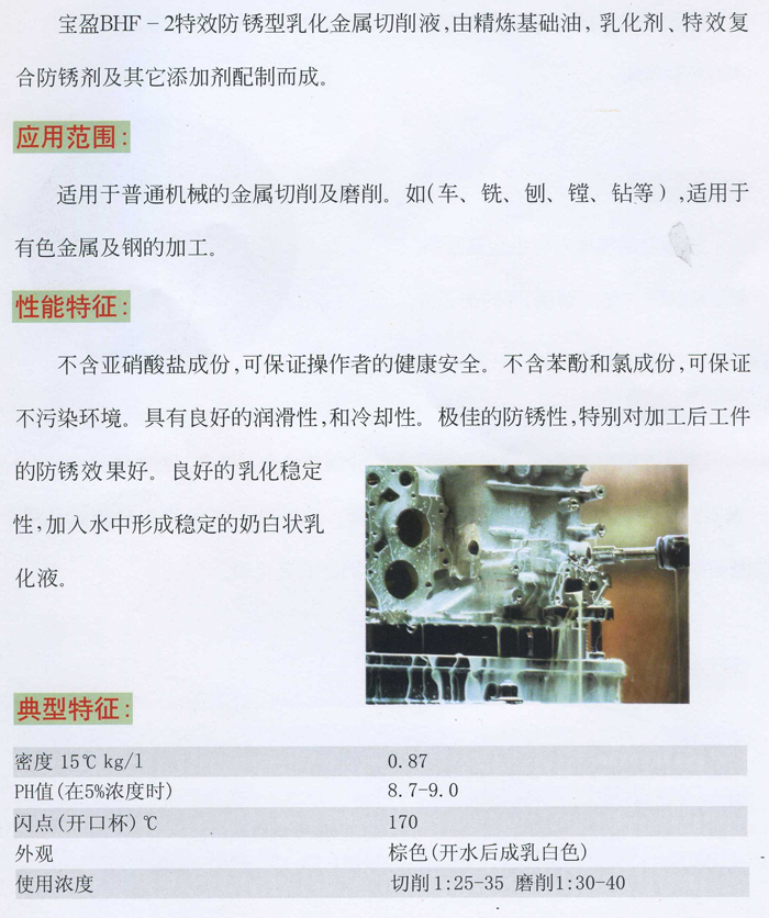 BHF-2特效防锈型乳化金属切削液